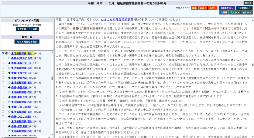 このスクリーンショットは令和6年2月開催の福祉保健常任委員会の議事録です。