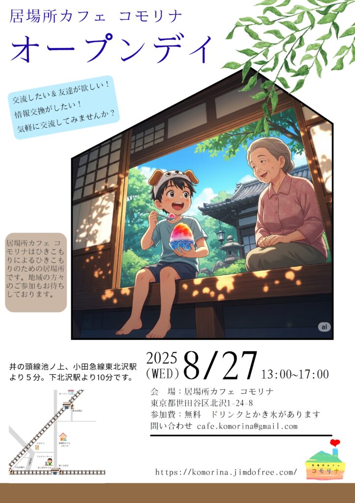 居場所カフェ コモリナはひきこもりのひきこもりによるひきこもりのための居場所ですが、地域の方々にも広く利用していただけるようにと「オープンデイ」の企画がはじまりました。