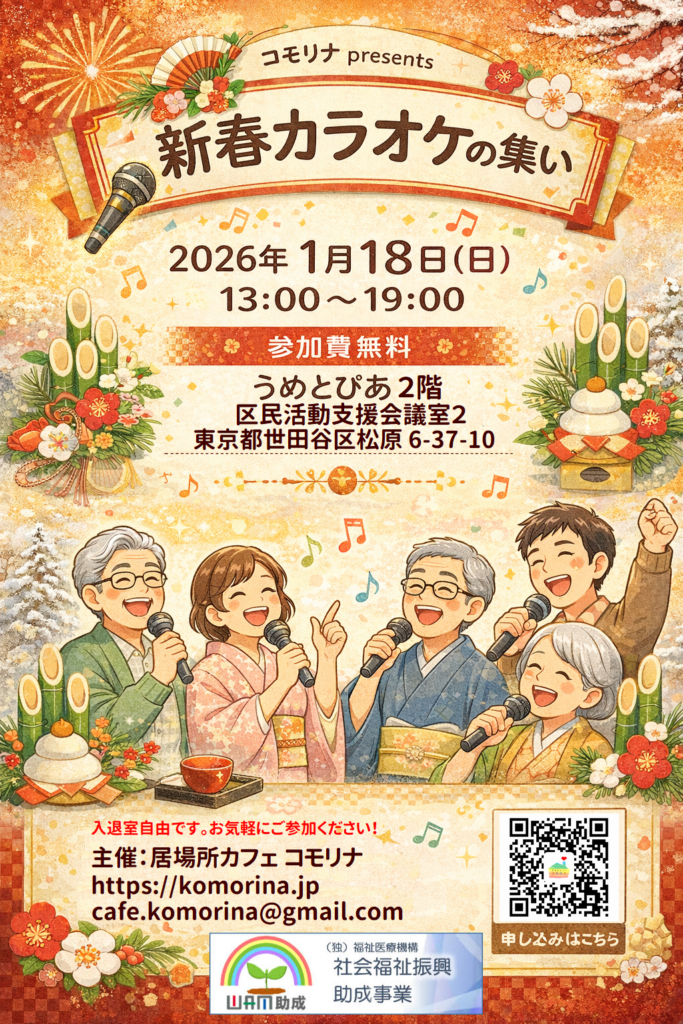 居場所カフェ コモリナ主催でカラオケ大会を開催します。