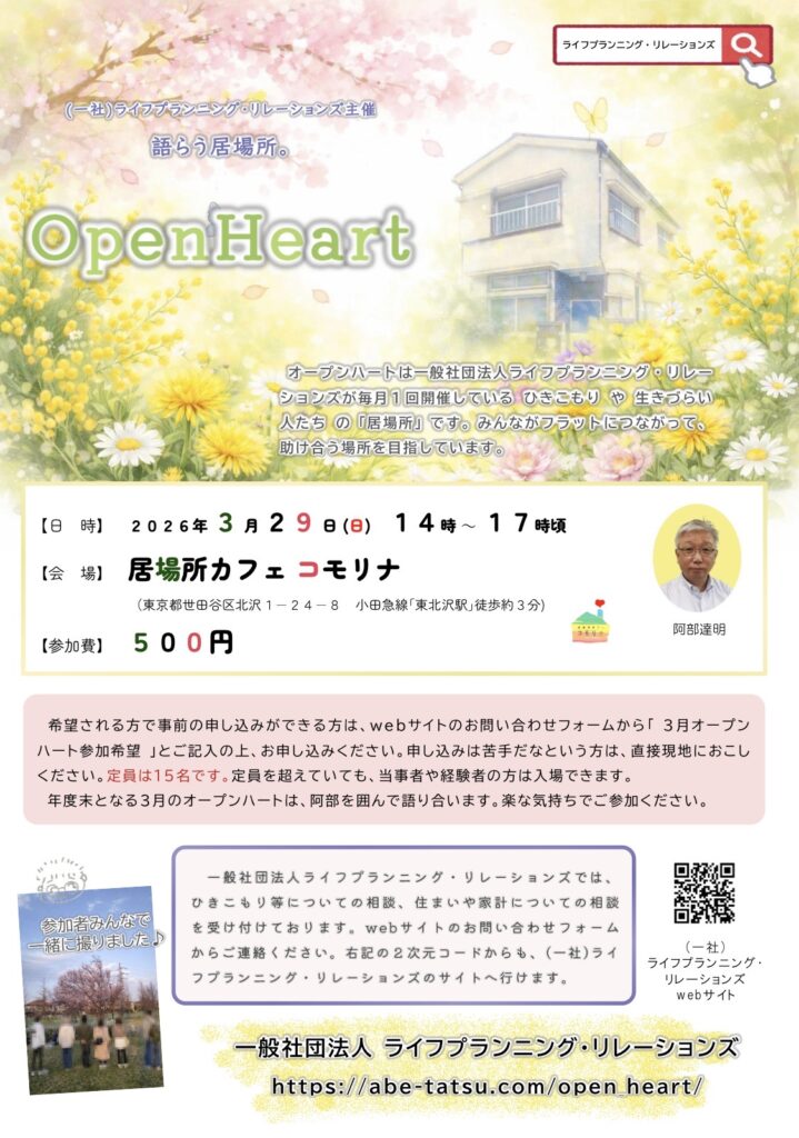 3/27(日)「オープンハート」開催のお知らせ