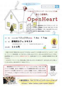 【主催】 一般社団法人 ライフプランニング・リレーションズ 【日時】 2025年12月28日(日) 14:00~17:00 【場所】 居場所カフェ コモリナ 東京都世田谷区北沢1-24-8 小田急線「 […]