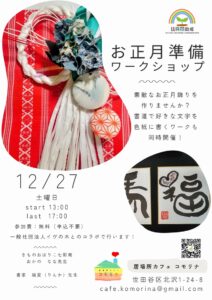 日時:12月27日(土) 13:00~17:00 場所:居場所カフェ コモリナ 2階(和室・洋室) 参加費:無料(申込不要) ※このワークショップは「WAM(福祉医療機構)社会福祉振興助成事業」となります 主催:居場所カ […]